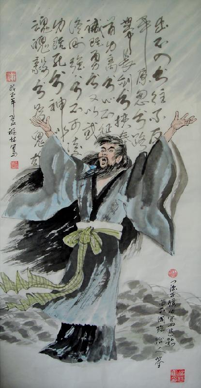 [译文] 腰间佩带长剑啊手持秦制的大弓,身首虽然分离啊壮心依然不变。 [出自] 战国 屈原 《楚辞·九歌·国殇》 操吴戈兮被犀甲,车错毂兮短兵接。 旌蔽日兮敌若云,矢交坠兮士争先。 凌余阵兮躐余行,左骖殪兮右刃伤。 霾两轮兮絷四马,援玉枹兮击鸣鼓。 天时怼兮威灵怒,严杀尽兮弃原野。 出不入兮往不反,平原忽兮路超远。 带长剑兮挟秦弓,首身离兮心不惩。 诚既勇兮又以武,终刚强兮不可凌。 身既死兮神以灵,魂魄亦兮为鬼雄。 注释: 此诗是追悼阵亡士卒的挽诗。国殇:指为国捐躯的人。戴震《屈原赋注》:“殇之义二:男女未冠(男二十岁)笄(女十五岁)而死者,谓之殇;在外而死者,谓之殇。殇之言伤也。国殇,死国事,则所以别于二者之殇也。” 操吴戈兮被(pī)犀甲:手里拿着吴国的戈,身上披着犀牛皮制作的甲。吴戈:吴国制造的戈,当时吴国的冶铁技术较先进,吴戈因锋利而闻名。犀甲:犀牛皮制作的铠甲,特别坚硬。 车错毂(gǔ)兮短兵接:敌我双方战车交错,彼此短兵相接。毂:车轮的中心部分,有圆孔,可以插轴,这里泛指战车的轮轴。短兵:指刀剑一类的短兵器。 敌若云:敌兵众多如云。 凌:侵犯。 躐(liè):践踏。 行:行列。 左骖(cān)殪(yì)兮右刃伤:左边的骖马倒地而死,右边的骖马被兵刃所伤。 霾(mái)两轮兮絷(zhí)四马:战车的两个车轮陷进泥土被埋住,四匹马也被绊住了。霾:通“埋”。 援玉枹(fú)兮击鸣鼓:手持镶嵌着玉的鼓槌,击打着声音响亮的战鼓。先秦作战,主将击鼓督战,以旗鼓指挥进退。 天时怼兮威灵怒:天地一片昏暗,连威严的神灵都发起怒来。天怨神怒。天时:上天际会,这里指上天。天时怼(duì):指上天都怨恨。怼:怨恨。威灵:威严的神灵。 严杀尽兮弃原野:在严酷的厮杀中战士们全都死去,他们的尸骨都丢弃在旷野上。严杀:严酷的厮杀。一说严壮,指士兵。尽:皆,全都。 反:通“返”。 忽:不分明。 超远:遥远无尽头。 秦弓:指良弓。战国时,秦地木材质地坚实,制造的弓射程远。 首身离:身首异处。 心不惩:壮心不改,勇气不减。惩:终止。 以:且,连词。武:威武。 凌:侵犯。 神:精神。 鬼雄:战死了,魂魄不死,即使做了死鬼,也要成为鬼中的豪杰。 译文1: 手执吴戈锐呵身披犀甲坚,在车毂交错中与敌人开战。 旌旗蔽日呵敌寇蜂拥如云, 箭雨纷坠呵将士奋勇向前。 敌寇凌犯我军阵呵践踏队列, 左骖倒毙呵右骖伤于刀剑。 埋定车轮呵拉住战马,拿过玉槌呵擂动鼓点。 战气萧杀呵苍天含怒, 被残杀的将士呵散弃荒原。 既已出征呵就没想过要回返, 家山邈远呵去路漫漫。 带上长剑呵操起秦弓, 纵使首身异处呵无悔无怨。 真是英勇无畏呵武艺超凡, 你永远刚强呵不可凌犯。 既已身死呵将成神显灵, 你是鬼中的英雄呵魂魄毅然。 ![]() 译文2: 手持吴戈啊,身披利甲,车轮交错啊,短兵厮杀。 旌旗蔽日啊,敌兵如云,将士争先啊,乱射交叉。 军阵被侵啊,队列遭踏,左骖惨死啊,右骖被扎。 车轮深陷啊,绊住战马,挥动鼓槌啊,战鼓猛挝! 苍天怨恨啊,神灵震怒,伤亡殆尽啊,尸横荒沙。 出征人儿啊,一去不返,野原茫茫啊,路途遥遐。 身佩长剑啊,秦弓在手,身首分离啊,壮心无瑕。 勇盈于衷啊,武彰于外,终显刚强啊,不可凌加。 身虽已逝啊,英灵永在,神魂刚毅啊,鬼雄堪嘉。 ![]() 赏析: “九歌”,原为传说中一种远古歌曲的名称。《九歌》是一组祭歌,共11篇。《九歌》,中国古代诗歌集。《九歌》中的诗歌原为楚国民间在祭神时演唱和表演,屈原将其改编与加工,写成格调高雅的诗歌。 《九歌》相传是夏代乐歌,屈原根据所祭祀神灵不同,共写有十一篇,分别是:《东皇太一》、《云中君》、《湘君》、《湘夫人》、《大司命》、《少司命》、《东君》、《河伯》、《山鬼》、《国殇》和《礼魂》。其中《国殇》一篇专门用于祭奠在战争死去将士的英灵。马承骕归纳《九歌》之作有五说,宗教歌舞、屈原自祭之辞、记事之赋、汉甘泉寿宫歌诗。 读屈原的这首《国殇》时,我还是少年,那敲击心灵的鼓声至今依然。越是品读越是震撼,于是有些话不得不说。 一、《国殇》最伤在何处? 一般的解释说“这是祭祀保卫国土战死的将士的祭歌。诗中不仅歌颂了他们的英雄气概和壮烈的精神,而且对雪洗国耻寄予热望,抒发了作者热爱祖国的高尚感情。”这也不错,但是,这首诗毕竟是“国殇”,最要看的是“殇”。《小尔雅》:“无主之鬼谓之殇。”戴震:“在外而死者,谓之殇。” 《国殇》是《九歌》中的一首,是招魂之歌。楚人之俗迷信鬼神,认为人死后灵魂依然存在。死则死矣,死国可矣,这正是诗中歌颂的。可是,诗中的战士不仅仅只是为国牺牲了,而且是死后“弃原野”,“首身离”。不但是首身相离不得全尸,而且尸弃原野不得归葬。这样的人,是很难魂归故里的。“出不入兮往不反”,他的灵魂是很难回家了。死亡固然可怕,而魂魄不得安生的战士,连成为鬼都不可能。这样的牺牲比通常的战死要惨痛得多,而牺牲者对这样的惨痛,是有心理准备的,为了国家,是宁可接受连正常的鬼都做不成的牺牲。《国殇》最要说的就是这个。 《国殇》伤的是战死而不能成鬼。 诗人明知,这灵魂注定不得归所,注定回不到家乡,回不到楚国,甚至连灵魂都成为不了,但依然希望牺牲者能够“身既死兮神以灵,魂魄毅兮为鬼雄”。殷殷切切,双目泣血,不忍再读。 二、“殇”的是谁? 一般的解释