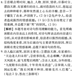 杜甫 天边老人②归未得,日暮东临大江哭。 陇右河源不种田,胡骑羌兵入巴蜀。 洪涛滔天风拔木,前飞秃鹙后鸿鹄。 九度附书向洛阳,十年骨肉无消息。 【注】①此诗当作于764年,当时杜甫复自梓州来阆州,拟由嘉陵江入长江出峡。此诗为杜甫重到阆州时作。当时当时吐蕃犯境,陇右失守,被战争波及的民众背井离乡,骨肉分离。②天边老人:杜甫自谓。 8.诗歌首联“天边老人归未得,日暮东临大江哭”有什么作用?请结合诗句简要分析。(5分) 9.根据诗歌内容分析,诗人临江“哭”的原因有哪些?(6分) 参考答案 8.首联点明时间,地点,人物,原因,情状,日暮时分,漂泊天涯,有家难归的诗人,面对浩浩的大江,想起过去的种种艰辛,那种突然涌上心头的辛酸,悲苦一下子爆发出来,声泪俱下。先声夺人,给读者造成强烈的情感震撼。为全诗奠定了感情基调,并总揽下面哭的原因。 9.诗人临江而哭,原因主要有:漂泊天涯,有家难归;天边老人何归未得;世事纷乱,有志难酬;亲人无讯,分外担忧;异族入侵,国运危艰; ![]() 注释 ① 杜诗往往以篇首二字为题,此亦一例。 ② 天边老人:诗人自谓。 ③ 大江,嘉陵江。声泪俱下曰哭。 ④ 陇右:陇右道,唐代十道之一。辖地为今甘肃陇山以西、乌鲁木齐以东。指广德元年(763)七月吐蕃入侵,尽取河西、陇右之地。 ⑤ 河源:在青海省境内。 ⑥ 胡骑:指广德元年十二月,吐蕃陷松、维、保三州及云山,新筑二城。 ⑦ “洪涛”一句:写江边所见,寓情于景,含世乱之象。 ⑧ 秃鹜(qi0),一种大型猛禽,又名“座山雕”,状如鹤而大,青苍色,张开翅膀有五六尺。 ⑨ 九度:多次。九,极言其多。洛阳,故里所在。 ⑩ 十年:自天宝十四年(755)安史之乱起,至今已十年。 ⑪ 骨肉:这里指兄弟。 参考译文 流落天边的老人回不了家,黄昏时分向东来到大江边失声痛哭。陇右和河源的地再也不能种了,吐蕃的骑兵已侵人了巴蜀。洪水滔天啊大风拔起了树木,前面飞着秃鹜后面飞着鸿鹄。多少次捎信给故乡洛阳,十年间骨肉亲朋音讯杳无。 赏析 《天边行》是唐代诗人杜甫于唐代宗广德二年(764年)旅居阆州、久客思乡而作的七言古诗,杜甫此七言诗描述了一幅战乱中人民颠沛流离的生活场景。全诗直抒胸臆、真情奔涌而出。 此诗当作于公元764年(唐代宗广德二年),当时杜甫复自梓州来阆州,拟由嘉陵江入长江出峡。此诗为杜甫重到阆州时作。当时吐蕃犯境,陇右失守,被战争波及的民众背井离乡,骨肉分离。年逾五旬的诗人在感慨自己回天乏力之余,亦唯有临江而泣矣。 “天边老人归未得,日暮东临大江哭” ,这两句是抒情式描写,漂泊天涯、饱受艰辛的诗人,面对浩荡的大江,想起过去的种种,那种突然涌上心头的辛酸、悲苦一下子爆发了出来,声泪俱下。天边老人,杜甫自谓。大江,指嘉陵江。 “陇右河源不种田,胡骑羌兵入巴蜀”,这两句说的是引发诗人临江哭泣的原因,一是有家不能归,一是国家正在遭受外族的入侵,山河破碎。陇右,指陇右道,属于唐代十道之一。包括今天甘肃陇山以西,新疆乌鲁木齐以东及青海东北部的地区。河源,在今天青海省境。763年七月,吐蕃攻占河西、陇右这些地方,十二月陷落松、维、保三州,以及云山、新筑二城。这就是这两句所咏的史事。 “洪涛滔天风拔木,前飞秃鹙后鸿鹄。”这两句写临江所见到的景物,波浪滔天,狂风撼动巨树,鸿鹊飞在了秃鹜的后面。这两句是即景寓情。上句写到了世乱的景象,下旬就感慨自己不能够奋翅急飞,因为前面有“秃鹜”。秃鹜,水鸟,一种比较凶猛的动物。后鸿鹄,指后飞的鸿鹄,“飞”字从上文而省,句法与“东飞驾鹅后鹜鸽”(《乾元中寓居同谷县作歌七首》)同。 “九度附书向洛阳,十年骨肉无消息”,最后这两句也是说哭泣的原因,多次给在洛阳的家人写信,却没有收到回信,没有亲人的消息,分外的担忧。骨肉,这里指兄弟。九度,指九次。这里极力说其多,不一定是确数。