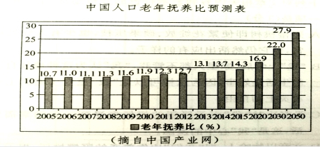 C.材料二的图表显示,从2005年至2015年,老年抚养比呈现逐年增长态势,2015至2050年呈现快速增长态势。