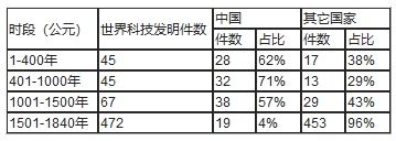 B.中国古代科技发明占世界重要发明的比例,在明代以前基本相同,都在一半以上。