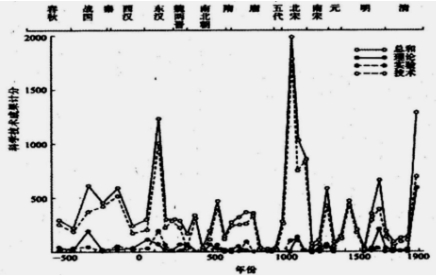 中国古代科学技术水平净增长曲线(以五十年为单位)