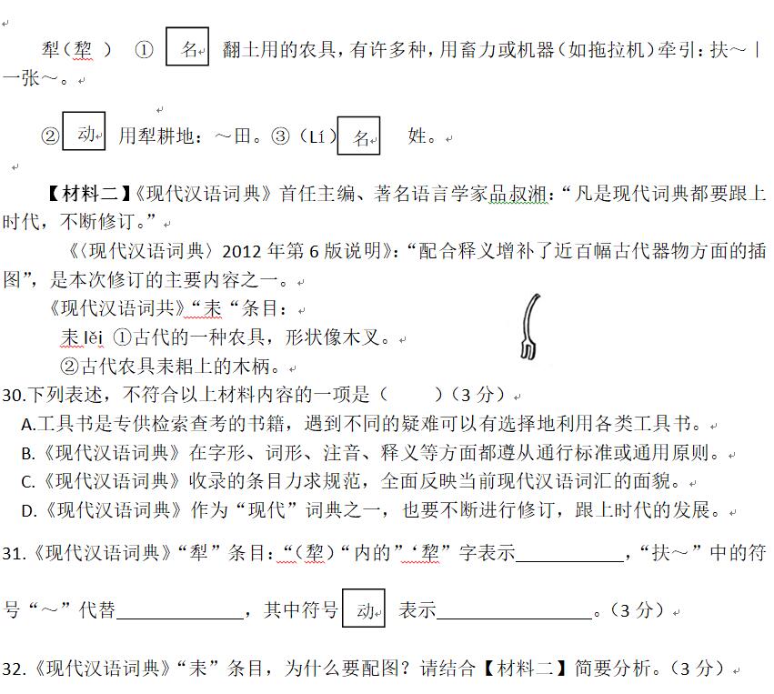 (二)阅读《鱼我所欲也》,完成第16-19题。(15分) 鱼,我所欲也;熊掌,亦我所欲也,二者不可得兼,舍鱼而取熊掌者也。生,亦我所欲也;义,亦我所欲也。二者不可得兼,舍生而取义者也。生亦我所欲,所欲有甚于生者,故不为苟得也。死亦我所恶,所恶有甚于死者,故患有所不辟也。如使人之所欲莫甚于生,则凡可以得生者何不用也。使人之所恶莫甚于死者,则凡可以辟患者何不为也!由是则生而有不用也;由是则可以辟患而有不为也。是故所欲有甚于生者,所恶有甚于死者。非独贤者有是心也,人皆有之,贤者能勿丧耳。 一箪食,一豆羹,得之则生,弗得则死。呼尔而与之,行道之人弗受;蹴尔而与之,乞人不屑也。 万钟则不辩礼义而受之,万钟于我何加焉!为宫室之美,妻妾之奉,所识穷乏者得我与?乡为身死而不受,今为宫室之美为之;乡为身死而不受,今为妻妾之奉为之;乡为身死而不受,今为所识穷乏者得我而为之:是亦不可以已乎?此之谓失其本心。 16.解释下列句子中加点的词。(4分) (1)鱼我所欲也 (2)故患有所不辟也 (3)乡为身死而不受 (4)此之谓失其本心 17.下列句子中加点词的意思相同的一项是(3分) ![]() 18.翻译下列句子。(4分) (1)非独贤者有是心也,人皆有之,贤者能勿丧耳。 (2)万钟则不辩礼义而受之,万钟于我何加焉! 19.作为21世纪的中学生,你怎样理解“义”?请选取两位我国历史上含生取义的人物,简单叙述其事迹。(4分) 三、写作(40分) 20.下面两题,任选一题作文。 (1)有生活就有幸福。感动亲情是一种幸福,获得成功是一种幸福,得到关爱是一种幸福,帮助别人是一种幸福,奋斗也是一种幸福……其实,幸福就在我们身边。 请以“ 也是一种幸福”为题作文。 (2)请以“走进阅读的世界”为题作文。 要求:①如选(1)题,先将题目补充完整;②除诗歌外,文体不限;③不少于600字;④文中不得出现真实的校名、人名。 B卷(50分) 四、古诗词赏析(10分) 【甲】望岳 [唐]杜甫 岱宗夫如何,齐鲁青未了。 造化钟神秀,阴阳割昏晓。 荡胸生层云,决眦入归鸟。 会当凌绝顶,一览众山小。 【乙】登飞来峰 [宋]王安石 飞来峰上千寻塔,闻说鸡鸣见日升。 不畏浮云遮望眼,只缘身在最高层。 21.【甲】诗描绘了泰山 的气势和 的景色。(2分) 22.【乙】诗中“浮云”一词的含义是什么?(2分) 23.请从“钟”字入手,对【甲】诗中“造化钟神秀”这句诗作简要货析。(3分) 24.【乙】诗中“不畏浮云遮望眼,自缘身在最高层”包含怎样的哲理?它与【甲】诗中哪两句有异曲同工之妙?(3分) 五、课外阅读与理解(15分) ①人贵立志。古往今来,能成就大事业者莫不先怀雄心壮志,并且矢志不渝。宋代学者程颢曾说:“治天下者,必先立其志。”明代学者王阳明也说:“夫学,莫先于立志。”可见,立志对于一个人的事业发展来说,起着十分关键的作用。 ②何谓立志、如何立志?答案见仁见智、人言人殊。一些人立志只注重个人利益,或者纯凭个人志趣,这显然过于狭隘和短视,不宜提倡;更多的人在立志时首先考虑国家和人民的需要,在这个大前提下寻找个人的兴趣点,然后确定志向。这样的立志,既有利于社会进步,又可充分发挥个人的积极性与特长,值得大力倡导。 ③在我国历史上,为国家和民族作出过重要贡献的人,大多立有大志。比如,被林则徐誉为“绝世奇才”的左宗棠,很早就怀有“身无半亩,心忧天下”之志。尽管他三次赴京会考皆名落孙山,直到40岁还是一介布衣,但救世济民之心毫不动摇,潜心研究中外舆地军略,后来被人誉为“天才军事领袖”。在抵抗外国侵略方面,他先是抱病、带着棺材前赴西北指挥,在新疆战胜了英国支持的阿古柏军队后,又挫败了沙皇对中国西北的侵略阴谋,捍卫了中国的领土主权。反观与他同时代的一些官吏,一心只追求一己之利,在国家危难之时,贪生怕死临阵脱逃,何谈为国家和民族做出重要贡献? ④关于立志问题,毛泽东同志在《致黎锦熙信》中有过深刻论述:“ 真欲立志,必先研究哲学、伦理学,以其所得真理,奉以为己身言动之准…… 尽力为之,以为达到之方,始谓之有志也。如此之志,方为真志,而非盲从之志。”这就是说,只有把立志建立在深明哲理的基础上,而不是简单盲从,才能使志向更加高远而切实。 ⑤毛泽东同志不但对如何立志提出了深刻见解,而且为我们如何实现高远志向做出了光辉榜样。他在求学时代,即立志救国救民,“身无半文,心忧天下。”为了救国救民,他在学习上废寝忘食,寻找救国救民真理,最后终于找到了马克思主义。为了救国救民,他还利用一切机会开展社会调查。在1917年暑假,他带着一把雨伞、一双草鞋,步行900多里,历时一个多月,深入农村,访贫问苦,倾听村民的呼声。此外,他还先后多次去安源煤矿了解工人疾苦,向工人宣传马列主义。这些社会调查为他后来形成依靠工农、走农村包围城市的革命道路,无疑起到了重大作用,也坚定了为民族独立、人民解放和国家富强、人民幸福而努力奋斗的意志。因此,在此后的革命征途中,不管遇到任何艰难险阻,毛泽东同志都矢志不渝,最终成为一代伟人。 ⑥在这个共筑中国梦的时代,我们要想为国家和民族的发展贡献自己的力量,实现自己 的人生价值,就必须确立高远的志向,并为自己的志向不懈奋斗。 (选自《人民日报》,有删改) 25.本文的中心论点是什么?(2分) 26.第③段运用了什么论证方法?有什么作用?(4分) 27.第④