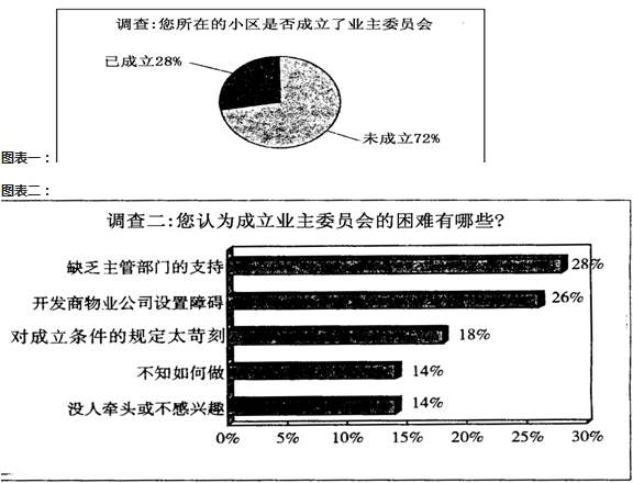 第II卷表达题 五、语言文字运用(20分) 13.下列句子中,加点成语使用正确的一项是(3分) A.在现实生活中,有许多人身居要职,却胸无城府,思想顽固不化,不思改革,甚至阻挠改革潮流。 B.在安全检查座谈会上,有代表指出,当前建筑安全生产形势依然十分严峻,各级领导要以对人民高度负责的精神,以如临深渊的心态,切实抓好安全工作。 C.他创作的两部小说虽然题材不同,发表的时间不同,但异曲同工,在评论界引起了很大反响。 D.《中国好声音》一反有些选秀节目“泛娱乐化”的特点,以“好声音”为唯一评判标准,带给观众朴实无华的感动,赢得了溢美之词。 14.下列各句中,没有语病的一句是(3分) A.一段时间以来,汉字听写大会、中国读书达人秀等文化活动引人注目,传统文化的重要性已越来越为国人所认知。 B.此次《环境保护法》修订,历时两年,前后经过了多次审议,如今终于定稿,对环境先于经济的原则上已达成一致并写入法律。 C.五味子是一种多年生草本植物,因其果实具有止咳化痰、清热散结的神奇功效,常常采集起来,加工成药材。 D.莫言的一生充满传奇色彩,他不仅是魔幻现实主义文学的集大成者以及首个诺贝尔文学奖的获得者,还是记者、作家以及电影工作者。 15.下面的句子组合成一段连贯的话,最恰当的一组是(3分) ①梁思成的思想不被当时的人们所接受,在他逝去多年之后,世人渐渐地认识了他,认识了他的思想的价值 ②自己所珍爱的东西向他展示了行将消失的暗淡前景,自己却无能为力 ③但是,用来体现他的思想价值的对象——历史文化建筑,却大部分已荡然无存 ④对于一个致力于传统文化整理、总结和保护的大师来说,还有什么能比他所珍爱的文化被消解更让他痛苦呢 ⑤他所做的种种努力,在现实面前,常常显得那么脆弱与无力 ⑥就如同眼看着一个患病的亲人,在庸医的手中一天天走向绝境,自己的有效施治方案却无人理睬 A.①③②⑥⑤④ 16.下面一段文字是关于胜利日阅兵空中梯队呈现的亮点的解说,请概括其中的三个亮点,每点不超过15个字。(6分) 17.业主委员会是监督物业管理,维护业主合法权益的组织。最近,一家权威媒体就“成立业主委员会”这一话题在北京进行了调查,调查结果如下表。请根据下列图表回答问题。(5分) ![]() (1)据表一,目前北京各小区成立业主委员会的现状是_________ (2)据表二,解决业主委员会成立难的问题,应该从以下三方面入手: 六、写作(60分) 18.阅读下面的材料,根据要求写一篇不少于800字的文章。 3月27日下午,因为非机动车道被汽车占用,北京一名中学生用手机拍摄占道的汽车,随后引来车上4名成年人的指责。这几个人一直在质问学生为什么要拍照,并称这名学生读书读傻了、“有病”、“有什么权利”……而这名学生则表示,是对方占用了自行车道,挡住了自己的路,并称人人都有权利拍照。事情发生后,很多人对中学生表示支持,认为监督不良行为是每个市民都应负起的责任。 要求:选好角度,确定立意,明确文体(诗歌除外),自拟标题;不要脱离材料内容及含意的范围作文,不要套作,不得抄袭。