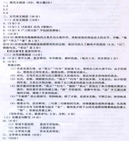 贵州省遵义市2016届高三第三次联考语文试题及参考答案(6)