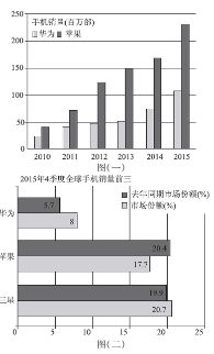 第Ⅱ卷 五、语言文字运用(20分) 13.依次填入下列各句横线处的成语,最恰当的一组是 ①社会资本要认清保险市场和行业发展规律,股东不能 ②因为忽视来自外部市场环境和用户需求的变化,曾经 ③普京蜕,尽管有人试图将俄罗斯置于 A.急功近利 B.不可一世 C.闭关自守 D.不可一世 14.下列各句中,没有语病的一句是 A.足球足当今世界参与人数和传播范围最广的体育运动,具有广泛的社会影响,深受世界各国民众喜爱。 B.作为网络熟人社会的“朋友圈”,已渗透到生活的各个角落,但因传播环境的封闭,它的自我纠错力很弱,产生各种谣言充斥网络。 C.台湾地区地方公职人员选举结果11月29 日揭晓,国台办发言人表示,希望两岸同胞珍惜两岸关系来之不易的成果,继续推动两岸关系和平发展。 D.近年来,高校招生多以“男神”“女神”为宣传点,有人尽管质疑这种方式,但在另外一些人看来,这种宣传方式给人以视觉冲击力,具有更好的宣传效粜,值得肯定。 15.填入下面一段文字横线处的语句,最恰当的一句足 职责的转变与业务量的增加使得对消防员的要求也越来越高, A.坚毅的性格、过人的胆量、高超的技艺才能胜任如此繁重的任务 B.如此繁重的任务需要坚毅的性格、过人的胆量、高超的技艺才能胜任 C.胜任如此繁重的任务使人必需拥有坚毅的性格、过人的胆量、高超的技艺 D.没有坚毅的性格、过人的胆量、高超的技艺是无法胜任如此繁重的任务的 16.请在横线处补写恰当的语句,使整段文字语意连贯,内容贴切,逻辑严密。每处不超过15个字。(5分) 读书人所需要警惕的是,只把做官当作了读书的目的, 17.图(一)是2010~2015年华为手机和苹果手机的销量图,图(二)是2015年4季度全球手机销量前三图。请仔细读图,回答下面的问题。(6分) ![]() (1)请分析图(一),概括出华为手机和苹果手机的销售情况。(2分) (2)请根据图(二)预测,华为手机的全球销量能否赶超苹果手机和三星手机?原因是什么?(4分) 六、写作(60分) 18.阅读下面的材料,根据要求写一篇不少于800字的文章。(60分) 今年春节期间,浙江金华浦江有3名农家孩子失联。72小时,151支救援队7700余人次搜寻,上万人参与,对110余平方公里土地进行地毯式搜索,空中直升机、水库潜水员,各大媒体头条寻人……“水陆空”立体搜救,最终成功救出3名失联孩子,演绎出了“好莱坞大片”。这场浙江历史上最大规模的野外搜救,展现出对生命的尊重、对孩子的关怀、政府的责任担当、乡土的守望相助、社会的温暖力量等当代中国元素。 在这众多的中国元素中,你认为哪一种元素是当今中国更重要的元素?请结合材料内容及含意作文,体现你的思考、权衡与选择。 要求:选好角度,确定市意,明确文体,自拟标题;不要套作,不得抄袭。