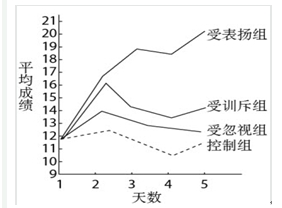 16.下面是著名心理学家赫洛克所做对比实验结果的示意图。请简要概括该实验的结论,要求语意简明,句子通顺,不超过70个字。