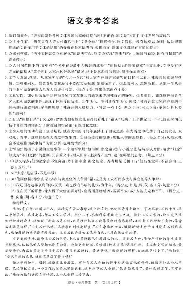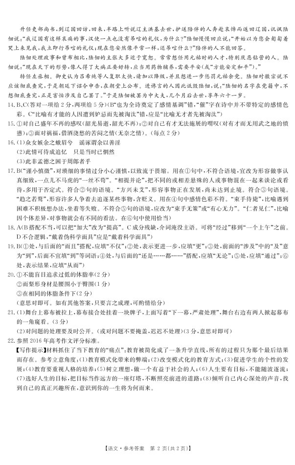 四川省巴蜀黄金大联考2017届高三12月联考语文试题及参考答案(6)