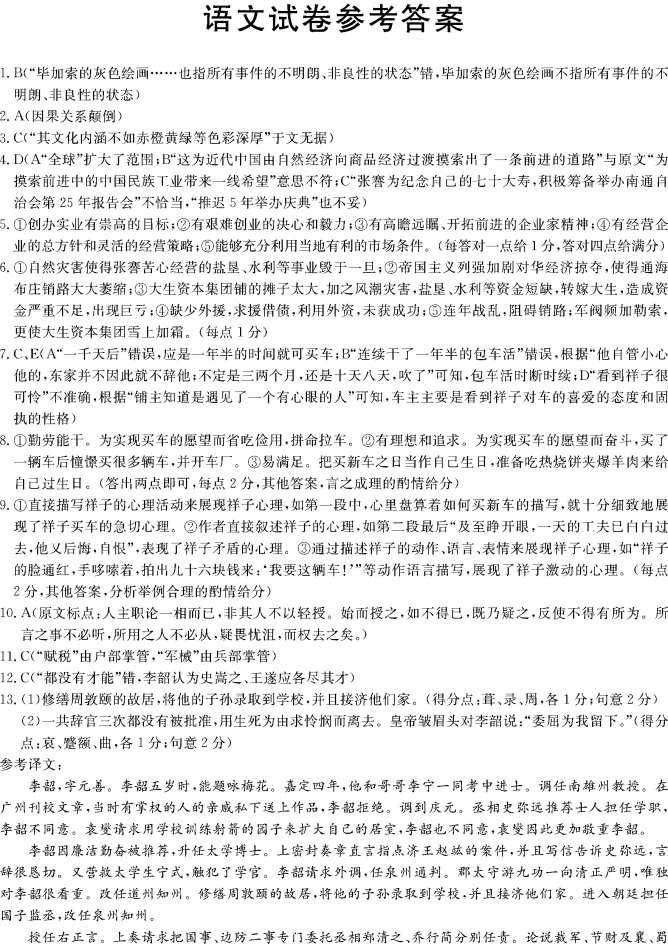 河北省邯郸市2017届高三第一次教学质量监测语文试题及参考答案(6)