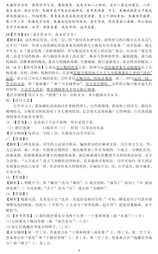 四、写作《60分) 22.阅读下面的材料,根据要求写一篇800字以上的文章。 目前,在浩瀚的宇宙中,地球还只是我们唯一的家园。地球之所以是我们人类唯一的家园,是因为它的表面分布着大量液态、气态、固态的水。地球的表面几乎被水覆盖。而在地球的表面上空,又被一层富含水汽的大气层所包围。可以说,地球是一个地地道道的水球。更可贵的是水能给我们很多的启示,看水思水,它有很多品质值得我们学习和效仿。 要求综合材料内容及含意,自选角度,自拟题目,自选文体,不得套作。 参考答案 ![]() ![]() ![]() ![]()