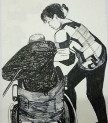 6.六旬男子李福昌在其85岁母亲去世前,画了200多幅速写,来记录母亲生活点滴。这是其中的一幅。请以“扶”为题,写一段描述性短文。要求:①结合画面特征;②语言表达鲜明生动;③运用虚实结合的手法;④字数80—100字。(6分)