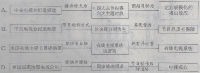 (三)实用类文本阅读。(本题共3小题,12分) 材料一: 2011年1月1日8点整,中央电视台记录频道正式开播,信号覆盖全球,作为中国第一个国家级的专业纪录片频道,也是第一个从开播之始就面向全球采用双语播出的频道,它向世人亮出了拥有人文精神的中国形象。央视纪录频道在内容编排上进行了详细的规划,主要呈现四大主体内容,六大主题时段的播出特点,以期达到规模化的播出效应。央视纪录频道同时采用国际纪录片频道的进行方式,淡化栏目概念,强化大时段编排,以主题化、系列化和播出季的方式,提升自身的影响力和美誉度。 (摘编自杨玉洁等《真实聚焦:2010~2011中国纪录片频道运营与纪录片产业发展记录》) 材料二: ![]() 注:群众构成反映的是收拾人群的构成,回答了“谁在看频道”的问题,集中度是目标群众收视率与总体群众收视率的比值,表示的是目标群众相对于总体群众的收拾集中程度,能够回答“谁更喜欢收看这个频道”的问题;集中度的比值大于100%,表示该类目标群众的收拾倾向高于平均水平。 材料三: 在制播运营模式方面,央视纪录频道实行的是频道化运营模式。央视是纪录片的主要制作基地。制作出的精品节目数量众多。当然,频道化运营模式也有其自身的劣势。劣势在于频道可以调动的资源非常有限,其融资渠道、产品设计、人财物资源调度都会受到种种限制。央视纪录频道目前正积极推进制播分离模式,节目制作以社会招标、联合制作、购买作为主要方式,并辅以自制精品,为建立较为健全的制作管理模式做好准备 (摘编自张同道等《2011年国家纪录片频道发展报告(下)》) 材料四: 总部位于美国首都华盛顿的国家地理频道是一个全球性的付费有线电视网,目前,国家地理频道已经以34种语言转播至全球166个国家和地区逾2亿9千万用户,作为一个纯纪录片频道能够取得如此卓越的成就,除了高质量,高观赏性的节目内容之外,与其频道自身的制播运用模式是分不开的,其制播运营模式如下:有线电视系统是在地方政府的批准下由有线电视系统运营商投资建立的,有线电视系统直接面向订户收取费用,有线电视系统运营商是指拥有并运营有线电视系统的企业实体,有线电视节目提供商为有线电视系统运营商提供节目,具体到国家地理频道而言,美国国家地理电视公司以及其他渠道承担提供片源的任务,国家地理频道承担的是节目制作等任务,即让来自国家地理电视公司等渠道的单个的片磁变成有机结合的整体,适于在电视上播放;康卡斯特电信公司作为有线电视系统运营商,则承担把电视信号传送到千家万户的电视机上的技术性播出任务。 (摘编自楚慧萍《多元延伸,有机互动——美国国家地理频道运营模式初探》) 7.下列对材料相关内容的梳理,不正确的一项是(3分) ![]() 8.下列对材料相关内容的概括和分析,正确的两项是(5分) A.中央电视台记录频道在内容编辑上进行了认真详细的规划,以期将来能够呈现出主题化、系列化的节目播出方式。 B.根据材料二中性别、年龄、学历这三项,我们能够了解到中央电视台纪录频道的观众构成和集中度的基本情况。 C.2011年,在71个大中城市的观众调查中中央电视电台纪录频道观众构成最高的三类人群分别是:男性、45~54岁以及高中学历。 D.根据材料二可知,随着目标观众年龄的增加以及学历的增高、集中度的比值也在不断的攀升。 E.美国国家地理频道的制作管理模式比较健全,它在融资渠道、产品设计、人财物资源调度方面不存在受到限制的问题。 9.根据上述材料,概括说明中央电视台纪录频道开播初期与美国国家地理频道在直播运营模式方面的不同。(4分) 答: (7)D (8)CE (9) 央视记录频道实行的是频道化运营模式,目前正积极推进制播分离模式,以社会招标、联合制作、购买作为主要方式。美国国家地理频道承担节目制作任务,而有线电视系统运营商则承担把电视信号传送到千家万户的电视机上的技术性播出任务。 二、古代诗文阅读(35分) (一)文言文阅读(本题共4小题,19分) 阅读下面的文言文,完成10-13题。 谢弘微,陈郡阳夏人也,父恩,武昌太守。从叔峻,司空琰第二子也,无后,以弘微为嗣,弘微本名密,犯所继内讳,故以字行,童幼时精神端审时然后言所继叔父混名知人见而异之谓思目此儿深中夙敏方成佳器有子如此足矣,弘微家素贫俭,而所继丰泰,唯受书数千卷,遣财禄秩,一不关豫。混风格高峻,少所交纳,唯与族子灵运、瞻、翟、弘微并以文义赏会,尝共宴处,居在乌衣巷,故谓之乌衣之游。瞻等才辞辩富,弘微每以约言服之,混特所敬贵,号约微子,义熙八年,混以刘毅党见诛,妻晋陵公主以混家事委以弘微。弘微经纪生业,事若在公,一钱尺帛出入,皆有文簿。高祖受命,晋陵公主降为东乡君,听还谢氏。自混亡,至是九载,而室宇修整,仓廪充盈,门徒业使,不异平日,田畴垦辟,有加于旧,中外姻亲,道俗义旧,入门莫不叹息,或为之涕流,感弘微之义也,性严正,举止必循礼度。事继亲之党,恭谨过常。太祖镇江陵,弘微为文学。母忧去职,居丧以孝称,服阕逾年,菜蔬不改。兄曜历御史中丞,元嘉四年卒。弘微蔬食积时,哀戚过礼,服虽除,犹不啖鱼肉。弘微少孤,事兄如父,兄弟友穆之至,举世莫及也。弘微口不言人短长,而曜好臧否人物,曜每言论,弘微常以它语乱之。九年,东乡君薨,资财钜万,园宅十余所,奴僮犹有数百人。弘微一无所取,