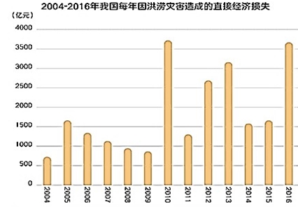 然而,自 2004 年以来,有 4 年洪涝灾害造成的损失超过了发生流域型大洪水的 1998 年(2551 亿元)。面对损失与受淹城市数成正比的趋势,人们开始对城市内涝问题给予更多 关注。