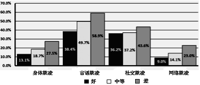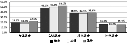 C.从材料三来看,成绩差的学生在各种欺凌中占的比率是最大的,体型偏胖的学生在各种欺凌中占有的比率也是最大的。