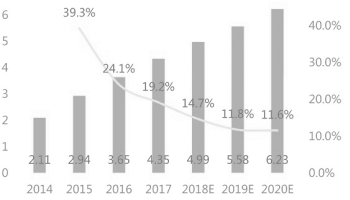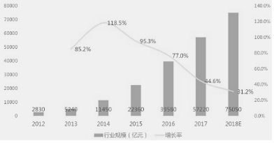 2012-2018年中国互联网共享经济市场规模及预测