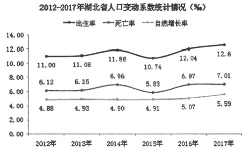 C.材料二可见“全面二孩”政策实施以来,湖北省出生人口明显增加,2017年更是达到12.6%人口出生率,与2012年相比显著提高。