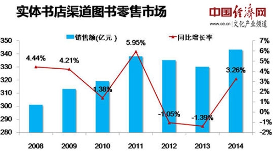 B.材料二显示,2012年全年和2013年全年的实体书店零售渠道数据均为负增长,2014年开始回正。