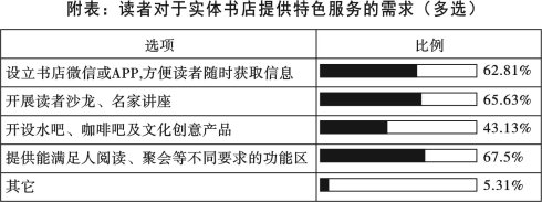 B. 大部分调查者希望书店提供能满足阅读、聚会等不同要求的功能区,开展读者沙龙、名家讲座,设立书店微信或APP,方便随时获取信息。