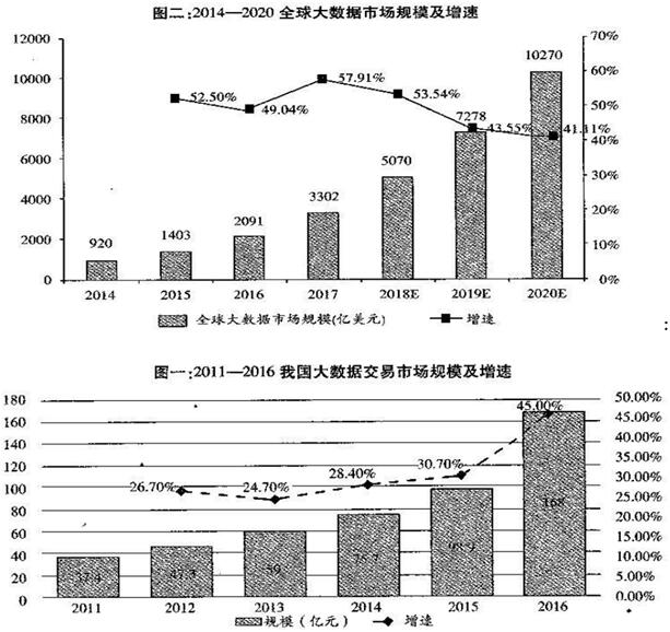 B.由材料二可知,2011—2016年6年间我国大数据交易市场规模和增速均呈逐年增长态势,其中2016年市场规模和增速均达到最高。
