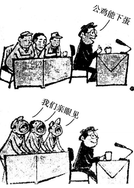三、语言文字运用(20分)阅读下面的文字,完成17-19题。 由于月球被地球引力潮汐锁定,我们只能看到月球的“正面”。月球“背面”到底什么样?人们议论纷纷,____。①中国的嫦娥四号探测器将于今年完成首次人类历史上的月球背面登陆,揭开其神秘面纱。 如何解决嫦娥四号与地球之间的通信,成为月球背面登陆探测的关键问题。与以往的空地通信不同,在月球背面登陆的嫦娥四号(),与地球上的测控中心进行通信联系。通信信号无法穿透月球抵达地球,地面通信天线只能和正面的探测器联系,至于月球背面实在是。这就需要中继卫星的。②这是之所以在嫦娥四号此次登月之前先发射“鹊桥”中继卫星的原因。 6月14日11时06分,“鹊桥”成功进入使命轨道。它被发射到地球、月球延长线上的地月拉格朗日L2点,让月球处于地球和它之间。这样,()。“鹊桥”的搭设,将建立起嫦娥四号探测器与地面的联系,③它犹如太空转发站,负责把来自地球的信息传送给位于月球背面的嫦娥四号探测器,把嫦娥四号探测器搜集到的信息转发回地球。 ④“鹊桥”的成功就位,不仅为嫦娥四号探月工程的圆满完成提供了有力保障,而且标志着我国的轨道控制、通信等空间技术已步入国际领先水平。 17.文中①-④句,没有语病的一句是(3分) A.①B.②C.③D.④ 17.(3分)C(A语序不当,“首次”应调至“人类历史上的”之后;B句式杂糅,可去掉“之所以”;D搭配不当,应将“水平”改为“行列”,或将“步入”改为“达到”。) 18.下列在文中括号内补写的两处语句,最恰当的一项是(3分) A.(第一处)不仅隔着遥远的地月距离,而且还要隔着月球球体;(第二处)地球能看到“鹊桥”,月球背面也能看到“鹊桥” B.(第一处)不仅隔着遥远的地月距离,而且还要隔着月球球体;(第二处)“鹊桥”既能“看到”地球,也能“看到”月球背面 C.(第一处)不仅隔着月球球体,而且还要隔着遥远的地月距离;(第二处)“鹊桥”既能“看到”地球,也能“看到”月球背面 D.(第一处)不仅隔着月球球体,而且还要隔着遥远的地月距离;(第二处)地球能看到“鹊桥”,月球背面也能看到“鹊桥” 18.(3分)B 19.依次填入文中横线上的词语,全都恰当的一项是(3分) A.莫衷一是 望尘莫及 鼎力相助 B.甚嚣尘上 鞭长莫及 鼎力相助 C.莫衷一是 鞭长莫及 大力相助 D.甚嚣尘上 望尘莫及 大力相助 19.(3分)C(莫衷一是:不能得出一致的结论。甚嚣尘上:形容对传闻之事议论纷纷,现多形容某种言论十分嚣张,含贬义。望尘莫及:只望见走在前面的人带起的尘土而追赶不上,形容远远落后。鞭长莫及:原来是说虽然鞭子长,但是不应该打到马肚子上,后来借指力量达不到。鼎力相助:敬辞,用于请托或感谢别人的帮助时的客气话。大力相助:用很大的力量帮助。) 20.下面这则文稿在表达上有五处不妥当,请指出并改正。(5分) 在新的一年即将到来之际,我们欣喜地告诉您:“新世纪中国”网站创办五周年了。让我们弹冠相庆吧。为纪念这一具有重大意义的日子,贵网站从即日起到6月7日开展以“‘新世纪中国’与我”为主题的征文,要求这五年来与网站共同成长的各位网友撰文投稿,恳请希望得到您的鼎力相助。对您的大作,我们将聘请知名作家认真评选。 ①将___改为___。②将___改为___。③将___改为___。④将___改为___。⑤将___改为___。 20.改错题(每空1分,共5分) ①将“弹冠相庆”改为“共同祝贺”(“弹冠相庆”是贬义词)②将“贵网站”改为“本网站”(“贵”是敬辞)③将“征文”改为“征文活动”(“开展”缺宾语中心语)④将“要求”改为“诚邀”(“要求”语气太强硬)⑤将“恳请”改为“恳切”(“恳请”和“希望”重复) 21.阅读以下文字,按要求完成题目(6分)阅读下面的漫画,根据要求回答问题。(6分) 漫画公鸡能下蛋我们亲眼见 ![]() (1)简要说明这幅漫画的内容。 (2)用简洁的语言揭示漫画的寓意。 21.(1)漫画有上、下两幅。上幅是一位领导坐在前面讲话,说“公鸡能下蛋”,后面有三个人坐着听。下幅是领导坐着,后面三个人站着,张大嘴喊“我们亲眼见”。(2)讽刺了社会上一些人不讲原则地迎合领导(他人)错误意见的现象。 四、写作(60分)阅读下面的材料,根据要求作文。 最近网络上,“佛系90后”一词传播开来。大意是不少“90后”把佛祖的无欲无求转换到了自己身上:有也行,没有也行,不争不抢,不求输赢。生活中,任性懒散,随遇而安;工作中,心如止水,不喜不悲。 有人觉得,这是社会走出物质贫困的标志,生存压力变小,价值取向多元,可喜可贺。 有人觉得,“佛系”没什么,化解戾气,淡泊名利,是压力下的放松,严肃中的调侃,有利于身心健康。 有人觉得,这是一种颓废心理的“丧文化”的表现,说明整个社会因“阶层固化”而失去了进取与活力,亟待改变。 结合自己的经历与思考,写一篇论述性文章,谈一谈你对这个问题的理解。