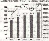 A.2012—2016年,我国网络文学用户人数逐年增加,所占网民比例一直稳步上升。