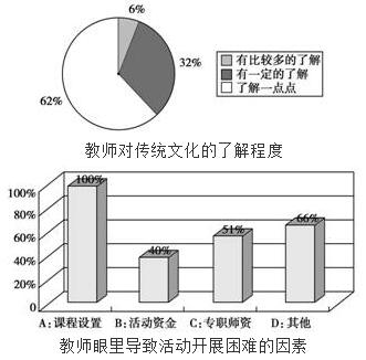 B.虽然近年来传统文化进校园活动开展得轰轰烈烈,但调查显示,比较了解传统文化的教师不足40%,这有可能成为制约传统文化进校园的一个因素。