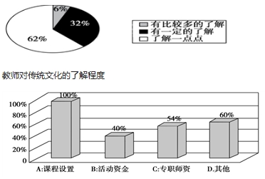 阅读下面的材料,完成小题。 材料一: 近日,教育部公布了第二批1035所全国中小学中华优秀文化艺术传承学校(以下简称“传承学校”)。在全国中小学开展传承学校创建活动,旨在全面贯彻落实党的十九大精神,以社会主义核心价值观为引领,根植中华优秀传统文化深厚土壤,传承中华文化基因,引导青少年学生在学习中华优秀传统文化艺术、参与丰富多彩的美育活动的过程中,培育深厚的民族情感,增强文化自信。 第二批传承学校体现了三个特点。一是实现了31个省(区、市)全覆盖,实现了城区、镇区和乡村学校的全覆盖。二是传承项目种类丰富。各地各校充分发掘传统文化资源,培育传承项目,各级非物质文化遗产项目占比近55%。三是凸显育人特质。传承学校以教育教学为基础,以实践活动为载体,以师资队伍建设为支撑,采取专兼职教师结合的方法,聘请社会艺术工作者、民间艺人、非遗传承人进校园开展传承项目教育教学活动。以成果展示为助推,营造向真、向善、向美、向上的校园文化。 (摘自2018年2月7日中华人民共和国教育部网,有删改) 材料二: 某杂志社进行了一次关于传统文化进校园的调查,部分调查结果如下: ![]() 教师对传统文化的了解程度 教师眼里导致活动开展困难的因素 材料三: 2014年,教育部印发了《完善中华优秀传统文化教育指导纲要》,要求把中华优秀传统文化融入课程和教材体系,有序推进中华优秀传统文化教育。然而,轰轰烈烈的活动之后,不少学校发现,师资缺、涵养浅,不系统,课时紧、不持久,家校分……成为实践中几乎所有学校都要面对的问题。 弘扬传统文化,学校是最现场,课堂是主阵地,教师是基础。“教师本身的素养、人文价值,学术专业水平和教书育人的精神非常重要。仅从这三个方面来说,我们传统文化教育的师资仍很欠缺。”在中国人民大学国学院教授袁济喜看来,教师数量不足、内涵不够使系统的传统文化教育难以展开。 “当前,传统文化进校园以一种嵌入式、掺沙子式的模式开展,是对现有教育体制的有益补充,应该充分肯定这种进步。”在袁济喜看来,当下主要是在现有课程体系中加入一些传统文化的元素等,要与现在的西式教育体系融合还需要一个过程。 (摘自2016年12月17日《中国教育报》,有删节) 材料四: 传统文化进校园更多的是一种熏陶和感染,校园文化要有活动设计方案,扩大师生参与度。校园文化活动的目的不是比赛拿奖,少数特长生参加的活动虽然有“看点”,但受众面不广,要提供给更多学生锻炼成长的机会和平台。 从学理上而言,文化有“道”与“术”两个层面。“道”是理念,是文化的内核、本质;“术”是形式、方法。“道”承载的是价值观体系,抽去“道”,文化将成为没有生命的空壳。两者孰轻孰重,毋庸赘言。因此,传统文化进校园不是简单地开展一系列文体活动来“堆积”,不能仅仅停留在活动层面,而要不断挖掘校园文体活动的思想内涵。校园文化其实也是一种和谐文化,和谐能激活教育的潜力,成为促进教育教学发展的正能量。 对于传统文化教育存在的“弱势”问题,要整合现有教材,结合师生需求,进行板块式的专题教育,形成有学校特色的校本课程,真正实现课程育人。当前,“互联网+”浪潮如火如荼,要充分利用网络优质资源进行传统文化教育,来弥补师资不足的“短板”。 (摘自2017年12月6日《中国教育报》,有删改) 7. 下列对材料相关内容的表述,不正确的一项是( ) A. 第二批传承学校覆盖了31个省(区、市),传承项目种类丰富,其中各级非物质文化遗产项目占比近55%。 B. 弘扬传统文化,学校是最现场,教师本身的素养、学术专业水平和教书育人的精神都影响着传统文化进校园的成效。 C. 在导致传统文化教育活动开展困难的因素这一问题的认识上,被调查教师与袁济喜教授的看法截然不同,被调查教师普遍认为课程设置是主要因素。 D. 文化有“道”与“术”两个层面,传统文化进校园,在活动层面开展文体活动主要体现为“术”,不断挖掘文体活动的思想内涵则主要体现为“道”。 8. 下列对材料相关内容的分析和理解,不正确的一项是( ) A. 戏曲、书法、传统手工技艺等进校园是传统文化进校园,在现有课程体系中加入一些传统文化的元素也是传统文化进校园。 B. 虽然近年来传统文化进校园活动开展得轰轰烈烈,但调查显示,比较了解传统文化的教师不足40%,这有可能成为制约传统文化进校园的一个因素。 C. 当前传统文化进校园主要以嵌入式、掺沙子式的模式开展,虽然值得肯定,但不如在现有课程体系中加入一些传统文化的元素等方式好。 D. 传统文化进校园更多的是一种熏陶和感染,开展具有文化内涵的校园文化活动有利于创建和谐的校园文化,促进教育教学的发展。 9. 第三、四则材料报道的侧重点有什么不同?请结合四则材料谈谈你认为有效开展传统文化进校园活动应采取哪些措施。 【答案】7. C 8. C 9. (1)材料三侧重顶层设计与基层实施之间的差距,强调要从师资和课程的角度落实传统文化教育。材料四侧重基层落实,主要论述如何开展好传统文化进校园活动。 (2)示例: 课程方面:整合现有教材,开发有学校特色的校本课程。 开展师生参与度高且具有文化内涵的校园文化活动。 师资方面:采取专兼职教师结合的办法,聘请专人开展传承项目教育教学活动。 利用网络优质资