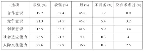 D.据材料二可知,“社会适应能力”是被采样学生最容易忽视的因素,而“竞争意识”是最多学生认为自己缺少的。
