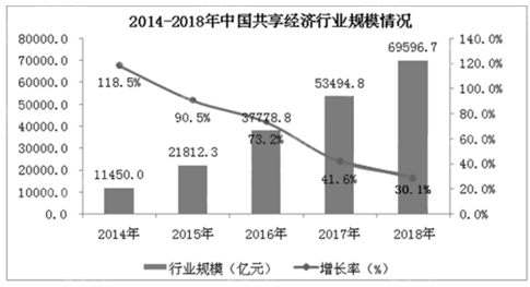B. 根据材料二,2014 年至 2018 年间,我国每年共享经济行业规模与其增长率成正比。