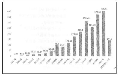 B.中国信保支持我国企业出口非洲承保金额是中国援助非洲的一个缩影。从数据看,从2002年起金额逐年递增,2017年达到极致,高达405.9亿美元。