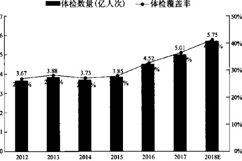 图2:2012-2018年中国健康体检人次数及覆盖率情况