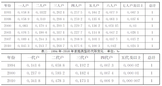 D.无论是1993年~2010年家庭户规模的变化,还是1994年~2010年家庭类型的代际变化,都体现出家庭向小型化、核心化发展的趋势。
