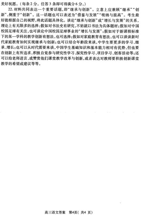 四、写作(60分) 22.阅读下面的材料,根据要求写作。(60分) “要前进,就要走前人没有走过的路。创新永选是科学发展的最大动力。”钱七虎如是说。 “我从来不支持‘自主创新’这个词,我认为,科学技术是人类共同财富。”任正非接受媒体采访,如此自信。 “没有拿参的,人不能自成为新人,没有拿来的,文艺不能自成为新文艺。”鲁迅先生如此坦言。 要求:围绕材料内容及含意,选好角度,确定立意,明确文体,自拟标题;不要套作,不得抄袭。不少于800字。 ![]() ![]() ![]() ![]()