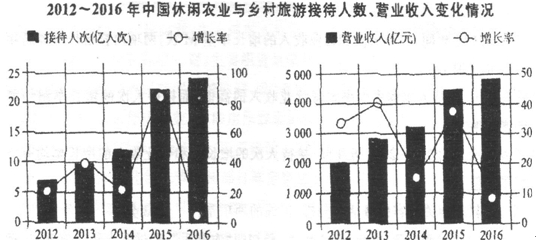 A.2012~2016年间,我国体闲农业、乡村旅游接待人次和营业收入均呈现出递增趋势,前景非常乐观。