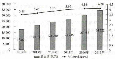C.2017年全国文化及相关产业创造的增加值为34 722亿元,占当年GDP比重为4.20%,相较于2016年创造的30 785亿元的增加值,占GDP比重提高了0.06个百分点。