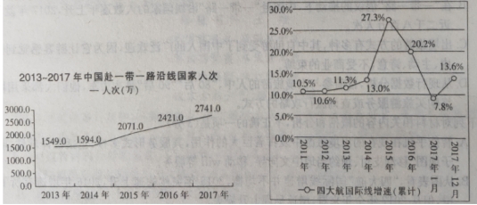 B. 在“一带一路”倡议的推动下,中国赴“一带一路”沿线国家的人数逐年上升,2017年就将近二千八百万人次。