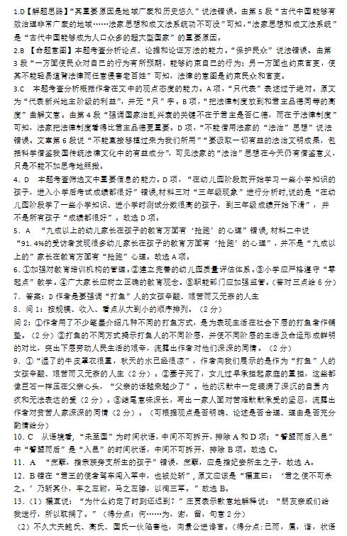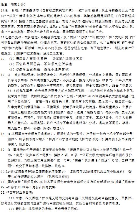 三、语言文字运用(20分) 阅读下面的文字,完成17~19题。(9分) “鲲龙”AG600是一款国产大型灭火及水上救援水陆两栖飞机,于2009年6月启动研制。历经9个寒暑,“鲲龙”AG600 ,以最大53.5吨起飞重量,成为世界在研最大的水陆两栖飞机,并成功陆续完成陆上和水上首飞,被誉为中国新一代特种航空产品代表作。目前,世界上能研发水陆两栖大飞机的国家 ,关键的水上起降技术都处于封锁状态。气水动布局设计,是大型水陆两栖飞机独具特色而又十分关键的核心设计。由于水的密度比空气大,同时本身具有波动性,会对飞机姿态造成扰动,因此产生在陆地上起飞不会出现的问题。“鲲龙”AG600 ,机身下半部分是船体,( ),保证既能水上起飞又能陆地起飞。 “鲲龙”AG600飞机按照“水陆两栖、一机多型、系列发展”的设计思路,在满足森林灭火和水上救援的同时,还可兼顾改装海洋环境监测和保护、资源探测、岛礁运输等用途需要,以及为“一带一路”提供海上航行安全保障和紧急支援等任务的需要。“鲲龙”AG600丰富的功能用途,让它成为的“多面手”。“鲲龙”AG600,是国产大飞机领域取得的一个重大突破, 了我国大型水陆两栖飞机的研制空白。 17.依次填入文中横线处的词语,全都恰当的一项是(3分) A.深孚众望 首屈一指 与众不同 填补 B.不负众望 首屈一指 不同凡响 弥补 C.不负众望 屈指可数 与众不同 填补 D.深孚众望 屈指可数 不同凡响 弥补 18.下列在文中括号内补写的语句,最恰当的一项是(3分) A.常规的飞机气动布局在机身上部,两个浮筒吊在机翼两侧下方 B.常规的飞机气动布局在机身上部,机翼两侧下方吊有两个浮筒 C.机身上部才像常规的飞机气动布局,两个浮筒吊在机翼两侧下方 D.机身上部才像常规的飞机气动布局,机翼两侧下方吊有两个浮筒 19.文中画横线的句子有语病,下列修改最恰当的一项是(3分) A.在满足森林灭火和水上救援的同时,还可改装满足海洋环境监测和保护、资源探测、岛礁运输等用途需要 B.在满足森林灭火和水上救援的同时,还可兼顾改装满足海洋环境监测和保护、资源探测、岛礁运输等用途需要 C.在满足森林灭火和水上救援要求的同时,还可改装满足海洋环境监测和保护、资源探测、岛礁运输等用途需要 D.在满足森林灭火和水上救援要求的同时,还可兼顾改装满足海洋环境监测和保护、 资源探测、岛礁运输等用途需要 20.在下面一段文字横线处补写恰当的语句,使整段文字语意完整连贯,内容贴切,逻辑严密。每处不超过15个字。(6分) 礼,是从行为举止上讲的。个人的修养、社会的运行都包含 ① 和行为举止,内和外两个方面。内在的情感通过外在的行为举止而落实和体现。行为举止必须有规范。在中华文化中,这种规范就是礼。守礼一项,如何做创新性的继承和发展,特别需要研究。一方面,礼的特点是 ② 。今日的中国和世界,与古代相比已经发生了翻天覆地的变化,而礼的变革远未能跟上(变化)。另一方面,近代以来在批判和否定传统文化,特别是批判旧礼教的影响下, ③ 。由此造成礼的严重缺失,带来了社会失序和风气浇薄的不良现象。 21. 阅读下面的材料,将其主要信息概括为一个长单句。要求:包括新闻关键信息,表达准确连贯,字数不超过60个字。(5分) (1)华为是目前国内智能手机的领导者,在5G技术研发上更是领先一步。 (2)随着2019年5G元年的到来,各大手机品牌相继宣布5G手机的发布时间。 (3)华为在MWC 2019大会上抢先发布了全球第一台5G折叠手机——华为Mate X。 (4)作为全新概念的折叠手机,华为Mate X引来不少关注。 (5)据消息人士透露,华为Mate X 在国内的发售时间将定在今年6月份。 四、写作(60分) 22.阅读下面的材料,根据要求写作。(60分) 文明因多样而交流,因交流而互鉴,因互鉴而发展。——习近平 目前,我们在全球各地看到越来越多社群之间失和、互相猜疑,甚至出现分裂。越是这样的情况,我们越应该就如何保持社会和谐与凝聚力交流看法。——新加坡总统哈莉玛 我们这个星球之美、人类文明之美,在于对话。——亚美尼亚总理帕希尼扬 请结合材料内容,给美国总统特朗普写一封信,表达你的认识与思考。要求:自拟标题,自选角度,确定立意;不要套作,不得抄袭;不得泄露个人信息;不少于800字。 ![]()