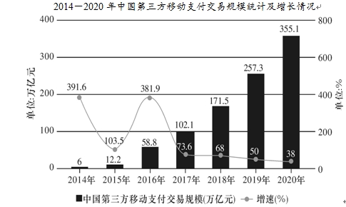 C.前瞻产业研究院整理的数据显示,2014-2020 年中国第三方移动支付交易规模持续增长,增速呈下降上升再到不断下降的趋势。