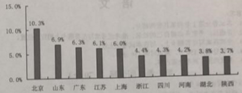 B. 2017年《中国诗词大会》第二季的微博参与用户中,北京占比最高,超过10%,山东、广东、江苏、上海都达到6%及以上,其余省份不足5%。