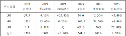 B.随着时代进步,5G市场将迅速增长并逐渐促使设备升级,到2023年5G手机市场份额将占整个市场总量的1/4左右。