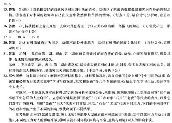 四、写作(60分) 22.阅读下面的材料,根据要求写作。(60分) 司马迁《史记·李将军列传》中记载着这样一个故事: 有一次,李广夜晚出去打猎。昏暗的树林中风吹草动,李广误将草丛中一块巨石当作老虎,张弓怒射,箭镞深没石中。第二天早上,李广发现那是一块石头后,重新再射,却怎么也射不进去了。 这个故事给了你怎样的人生启示?请据此写一篇文章。 要求:结合材料内容,选好角度,确定立意,明确文体,自拟标题;不要套作,不得抄袭;不得泄露个人信息;不少于800字。 ![]()