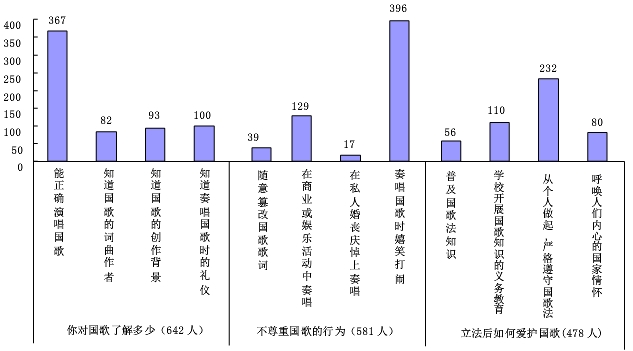 全国人大常委会法工委国家法室主任武增说:“那种把维护国歌尊严与所谓公民的言论自由、表达自由对立起来的观点是错误的,国家要对公民合法的权益予以保障,同时公民不得滥用自由和权益。对辱没国家的尊严、损害民族感情、危害国家利益的行为,必须予以法律的追究和制裁。”