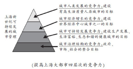 B.上海从治理结构、持续发展、经济增长、人类发展四个层面展开,逐步推进,非常具有规划性,实现了四个层次的竞争力的目标。
