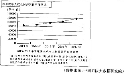 C.2013年至2017年,审理的涉未成年人权益保护案件呈上升趋势,这表明,侵犯未成年人 权益的行为逐年上升,对未成年人权益的保护力度在削弱。