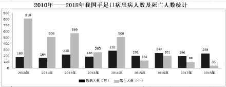 B.虽然我国手足口病患病人数八年间都在200万上下波动,但死亡人数却呈逐年下降的趋势,到2018年最低。