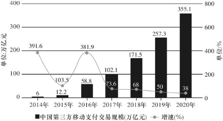 2014-2020 年中国第三方移动支付交易规模统计及增长情况