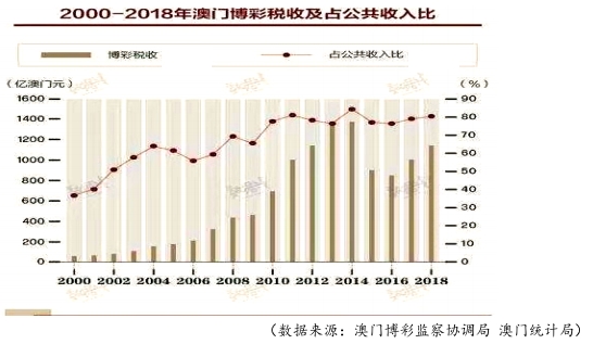 C.澳门博 彩税收从2000年至2018年一直逐年増加,其中2014年占公共收入比最高。