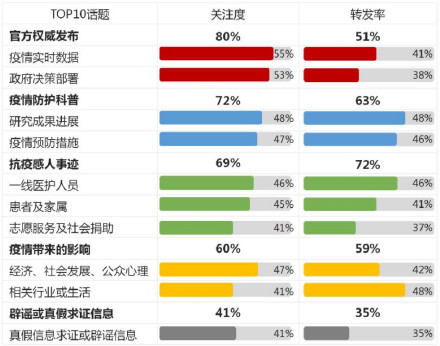 公众关注和转发的TOP10疫情相关话题