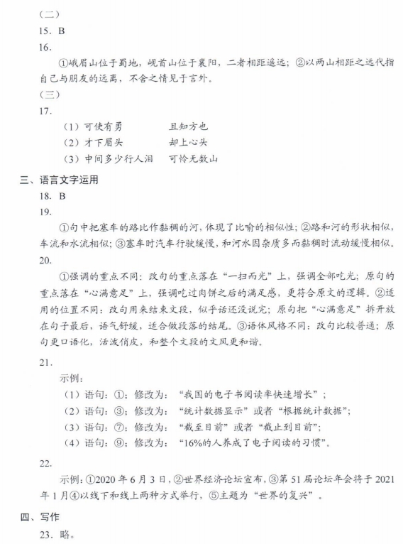 四、写作(60分) 23.阅读下面的材料,根据要求写作。(60分) 面对突发的新冠肺炎疫情,国家坚持人民至上、生命至上,果断采取防控措施,全国人民紧急行动。 人们居家隔离,取消出访和聚会;娱乐、体育场所关闭;政务服务网上办理;学校开学有序推迟;公共服务场所设置安全“一米线”。防疫拉开了人们的距离。 城乡社区干部、志愿者站岗值守,防疫消杀,送菜购药,缓解燃眉之急;医学专家实时在线,科学指导,增强抗疫信心;快递员顶风冒雨,在城市乡村奔波;司机夜以继日,保障物资运输;教师坚守岗位,网上传道授业;新闻工作者深入一线,传递温情和力量。抗疫密切了人们的联系。 请综合以上材料,以“疫情中的距离与联系”为主题,写一篇文章。 要求:选准角度,确定立意,明确文体,自拟标题;不要套作,不得抄袭;不得泄露个人信息;不少于800字。 ![]()