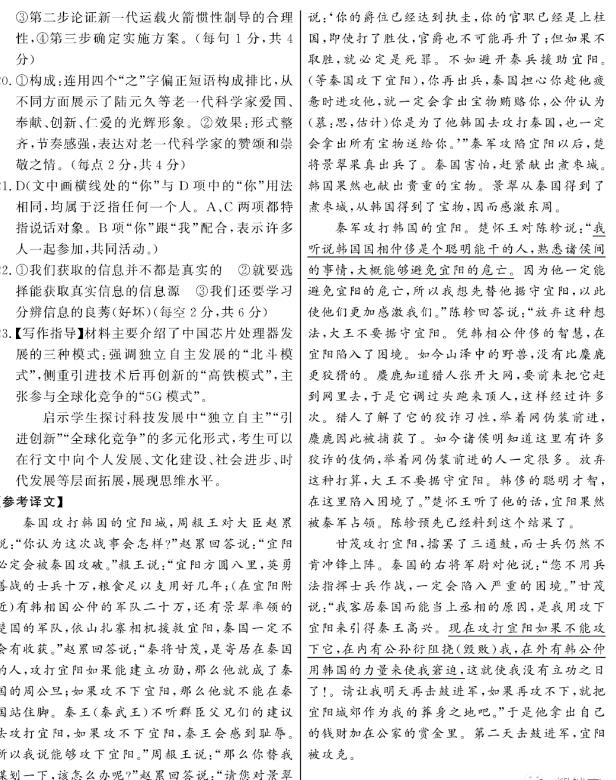 四、写作(60分) 23.阅读下面的材料,根据要求写作。(60分) 过去20多年,中国的芯片处理器发展主要有两种模式:一是北斗模式。以龙芯为代表的企业,独立构建技术体系,独立建设产业生态,通过完全自主来实现产品可控。二是高铁模式。以海思为代表的企业,通过“引进—消化—吸收—再创新”的模式,研发出有竞争力的产品。近年来,出现了第三种模式——5G模式,国内越来越多的企业参与全球生态建设,通过融入国际生态,打造具有国际优势的产品。这三种模式都需要重视,都对当前中国的处理器发展有推动作用。 以上材料对我们具有启示意义。请结合材料写一篇文章,体现你的感悟与思考。 要求:选准角度,确定立意,明确文体,自拟标题;不要套作,不得抄袭;不得泄露个人信息;不少于800字。 ![]() .