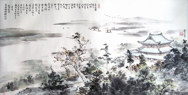 注释 ⑴原州:辖今甘东宁南交界处,州治临泾(今甘肃镇原)。从事:州郡长官的佐吏。 ⑵牵愁:牵动愁绪。 ⑶边城:边境附近城镇。 ⑷北来:从北面飞来。塞角:边塞上报时的号角。咽:低咽。 ⑸泾河:即泾水,北源出甘肃平凉,南源出甘肃华亭,东南流入渭水。 ⑹派:水的分流,这里泛指水流。 ⑺贫官:清贫的官宦。 参考译文 处身在异乡,什么地方最能引发忧愁?那就是独自望远,登上这边城的城楼。暮色渐渐降临,昏黄中只见北来雁飞向南走,地域荒凉寒冷,往西去更没有郡州。听几声塞上号角,时而高越时而低咽响在楼头,一条辽远的泾河,冻成冰再不能东流。你作异乡贫穷的小官,我在异乡客居滞留,此中的离愁别恨,一样都悠长难收。 ![]() 赏析: 《登原州城呈张贲从事》是北宋诗人魏野创作的一首七言律诗。这首抒写羁旅客愁。首联以问句呼起,点明忧愁因独上边城城楼望远,但见满目荒寒引起。颔联渲染原州冷落萧条的景象,言置身于无尽头的孤寂之感。颈联由听觉感受和视觉感受,衬托出诗人心境的悲凉。尾联总束全篇,写出友人为异乡贫官而自身为客,离恨均难收拾的情状。全诗写景高远开阔,情调苍凉凄楚。 首联以设问形式开篇,先是自问身处异乡何处最易牵发个人愁绪,接着自答孤身一人独自登上边远城楼,这就足“答案”。身处异乡,就已令人孤寂忧愁的了,更何况是客子伶仃一人独自登上偏远边城城上之楼呢。站在边城高处,就能极目远眺,边地景色一览无余。就是这带有边地特征的景色,最能牵动客子心中之愁,此意虽然诗人没有明说,但却蕴情于景。借助逼真的画面予以展现。这就既为下文抒写展开了宏伟的画卷,又设定了“愁”这一主体旋律,颇有柳宗元“城上高楼接大荒,海天愁思正茫茫”(《登柳州城楼寄漳汀封连四州》)式的开头风格。 颔联开始抒写塞外风光。“日暮北来惟有雁”,秋季黄昏,抬眼望去,眼前看到的唯有振翅而飞的北归雁群,尽管是“平沙万里绝人烟”,但却仍是“衡阳雁去无留意”,北来的雁群仿佛毫无留意,头也不同地向着南方的中原飞去了。渐渐地“几行归雁云边断”,心中不南涌起“何处行人不断肠”的愁怨。诗人的家同本在中原,但却不得不滞留两北边陲一望着那越飞越远的雁儿,令作者伤感。“地寒西去更无州”,虽说现在还是秋天,然而边地冬季来临甚早,早已天寒地冻,衰草连天了。从此再往西去,已经没有朝廷的州郡了。想到自己就像那身不由己无依无靠的蓬草,被寒风一吹,就流落到了这边远荒凉的原州边城了,作者不由得悲从中来。 颈联紧承上文进行情景描述。“数声塞角高还咽”,处在凄凉哀愁情绪中的诗人偏偏又听到了几声时而高昂时而呜咽的军中号角,就不禁在凄凉悲切的羁旅心境中又平添了几多哀愁:“一派泾河冻不流”,诗人此刻站在原卅l城上,放眼望去,只见泾河之水早已被冻住不流了,更使人觉得“塞上风云接地阴”,让这种顿起“愁云惨淡万里凝”哀思。面对这样的穷荒野漠,碎丘幽壑,耳闻声声号角,呼呼北风,一介书生剩下的只有“可怜无定河边骨”的惨不忍睹的景象和“古来征战几人回”之无穷无尽的感慨了。 尾联“君作贫官我为客,此中离恨共难收”。这两句是说:你在异乡作小官,我在异乡作异客,其中的客愁,是你我两人都难以收拾的。尾联以贫官、异客之离恨作结,呼应了开头的“牵愁”,点明了主旨。 这首诗首尾两联抒情,中间两联写景。抒情,则感情悲怆;写景,则景象萧瑟。情景交融,感人至深。这首边塞羁旅行役律诗景象萧瑟,感情悲怆,和盛唐的边塞诗有霄壤之别。时代之不同是造成差异的一个原因,身份之不同则是更主要的原因,作者是个消极遁世的隐士,而高适和岑参他们则是积极进取的用世之士。